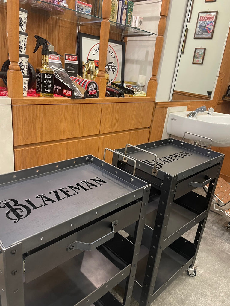 DESKやSHELF、ワゴンなどの規格の製品にロゴやネームを加工します。