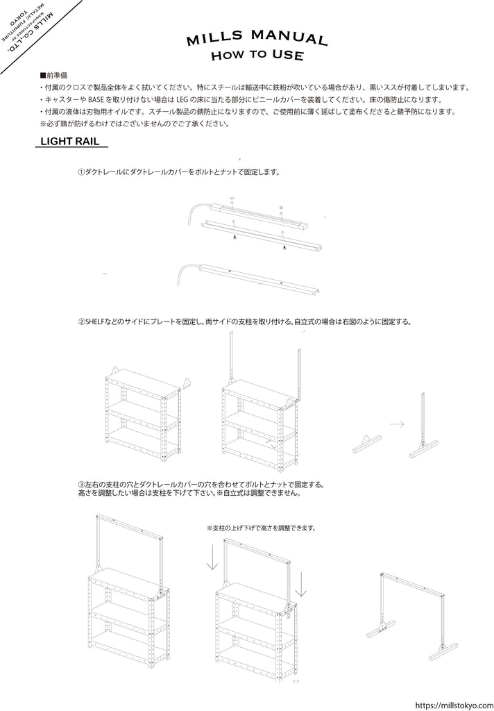 ※上記サイズはレール部分の長さです。自立させる場合の外側同士のサイズは上記+50mmとお考えください。