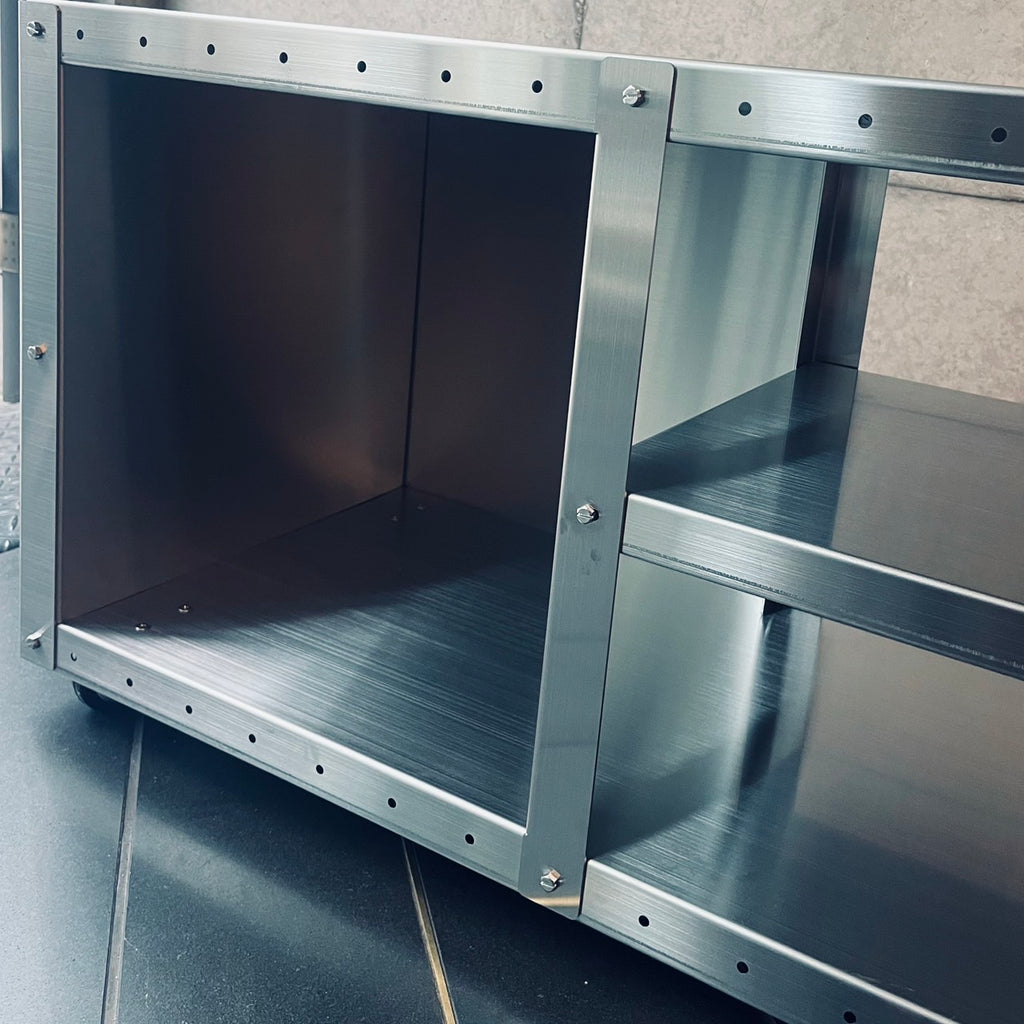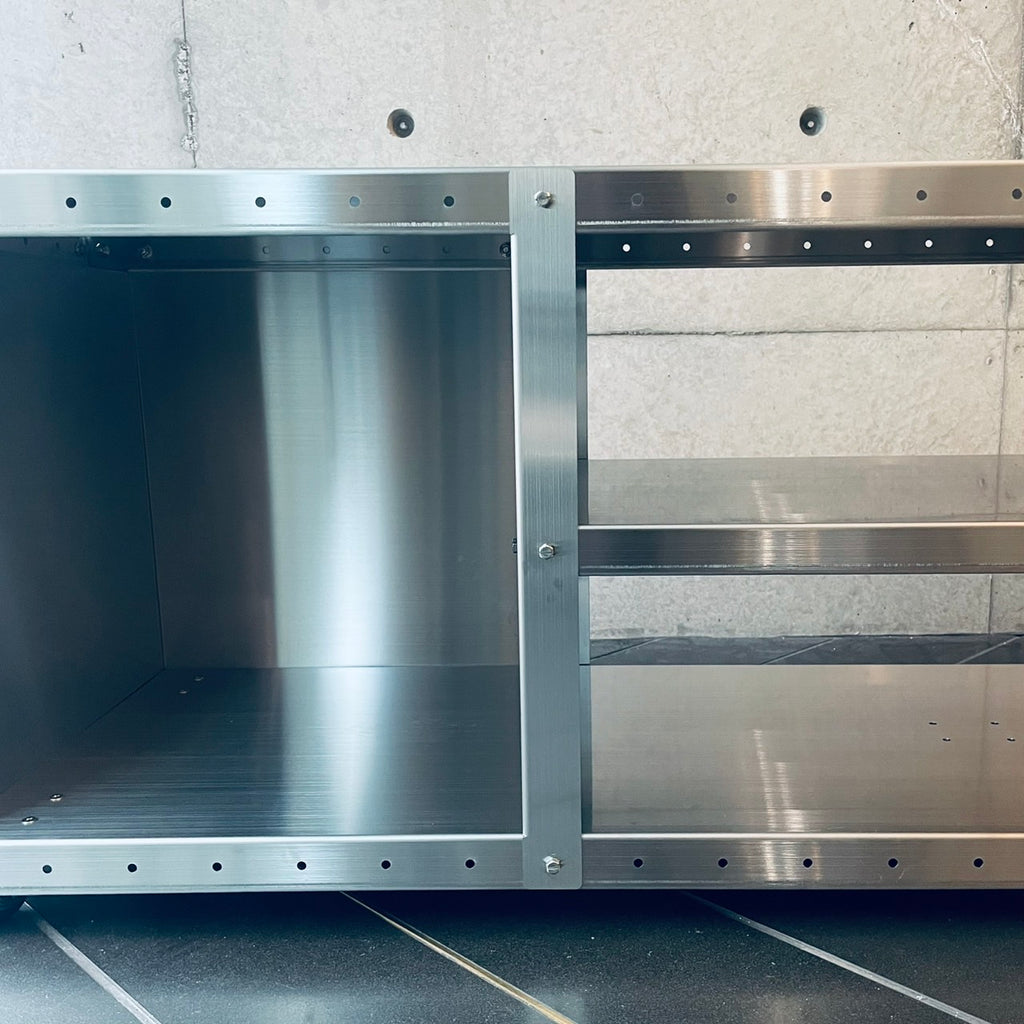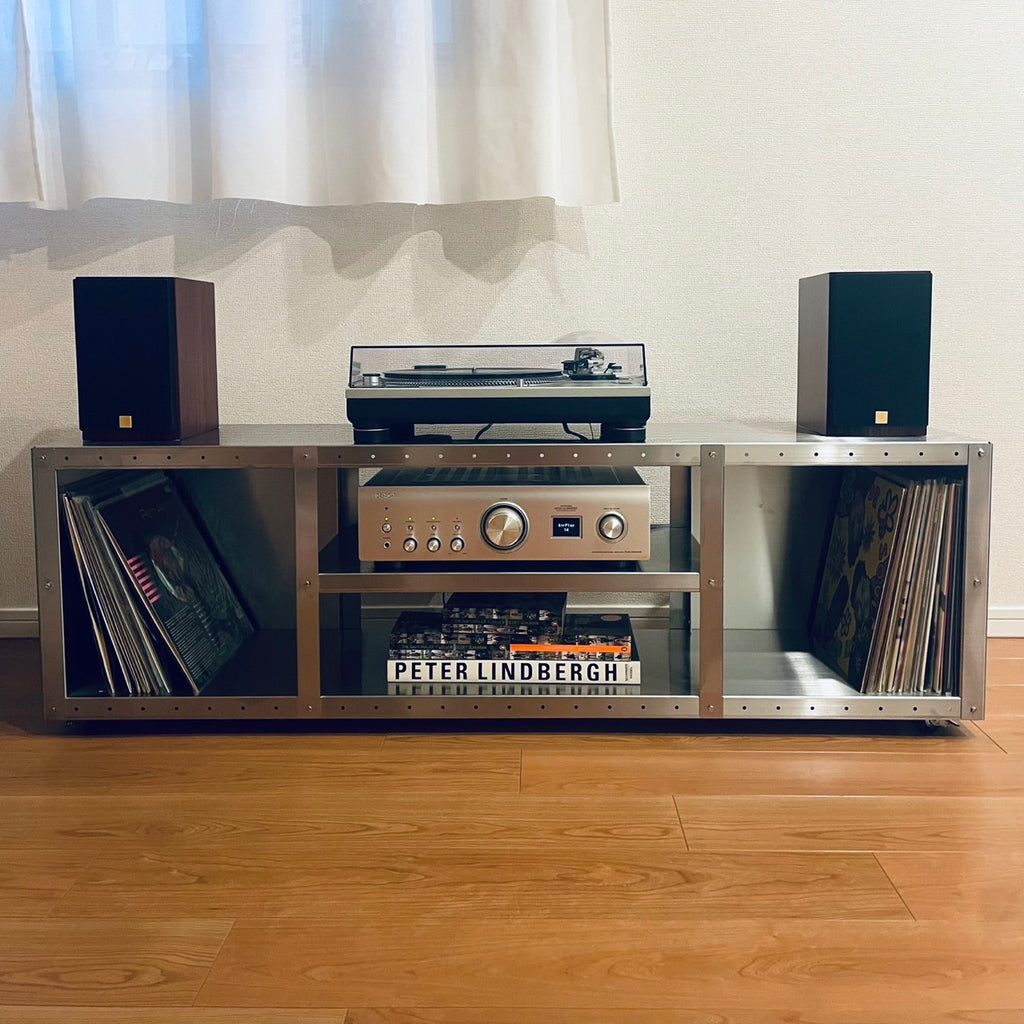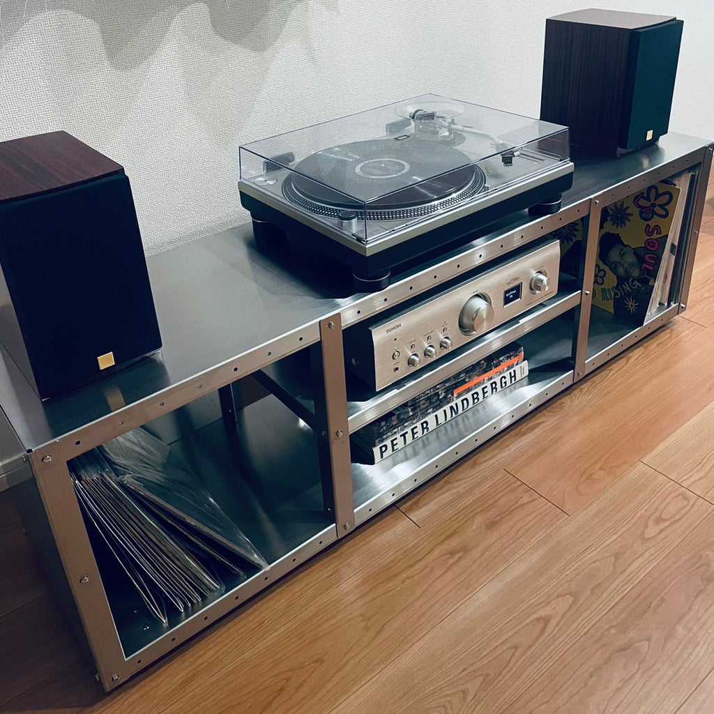 棚部分にレコード、アンプ等収納可能なオーディオラックです。LEGをブロック状にすることでレコードをスムーズに出し入れ可能です。キャスター付きなので移動も簡単です。ご利用の機材によってサイズ、仕様変更ですのでお気軽にご相談下さい。