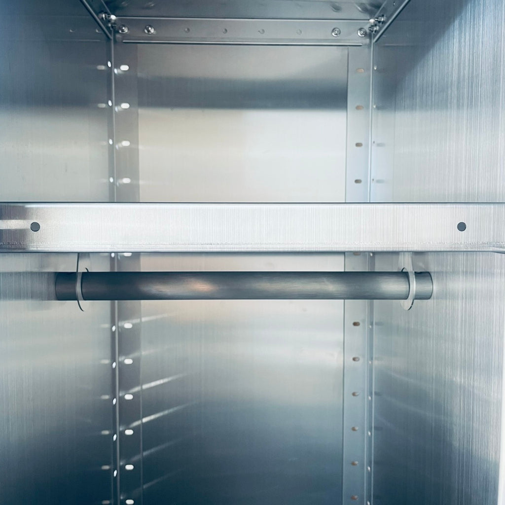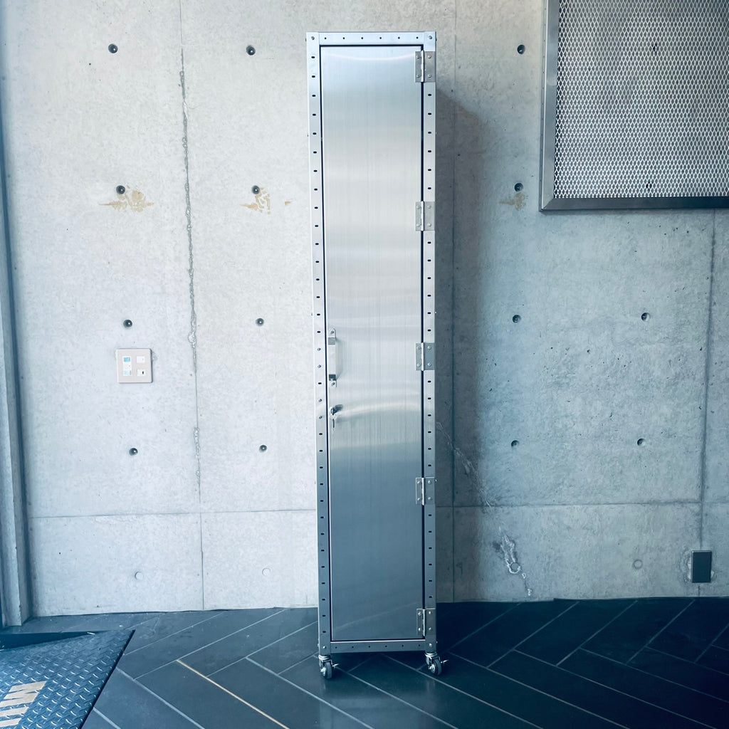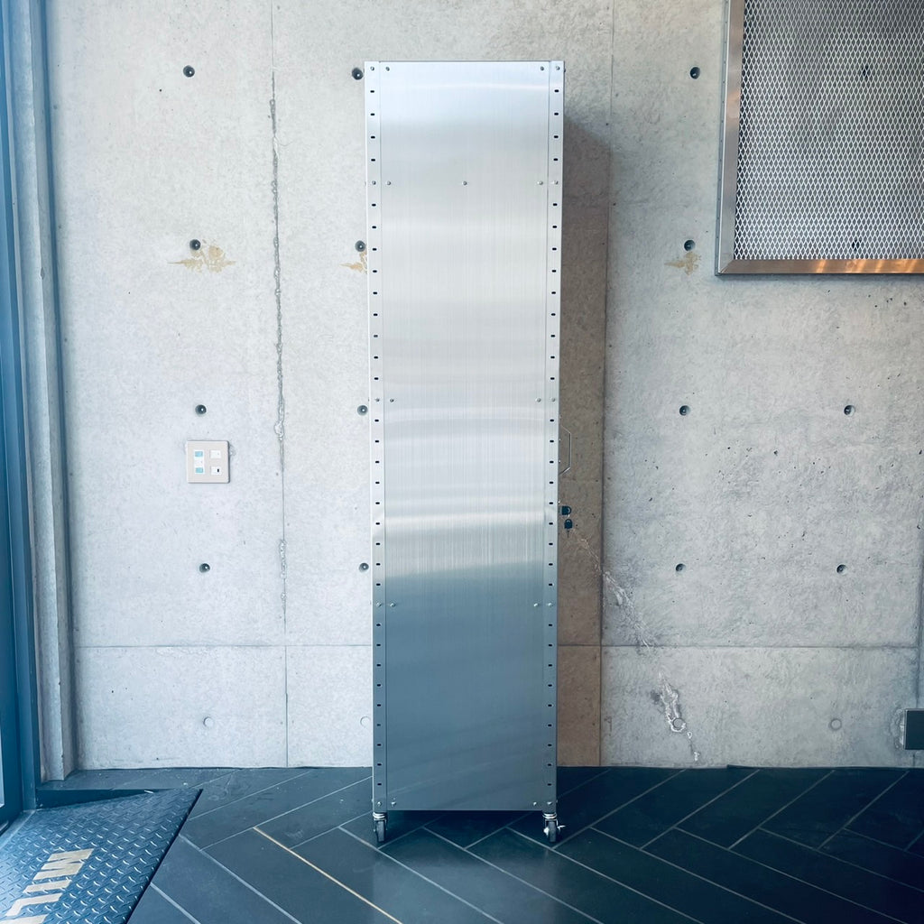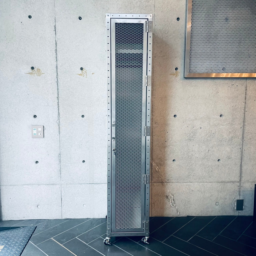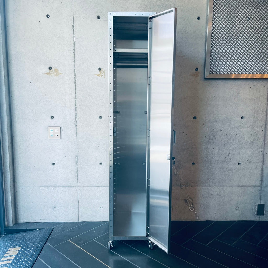 1人用ロッカー、庫内は収納棚とハンガー用パイプをご用意しています。扉はノーマルとEXPANDお選び頂けます。※サイズ、扉数変更可能ですのでお気軽にお問合せ下さい。
